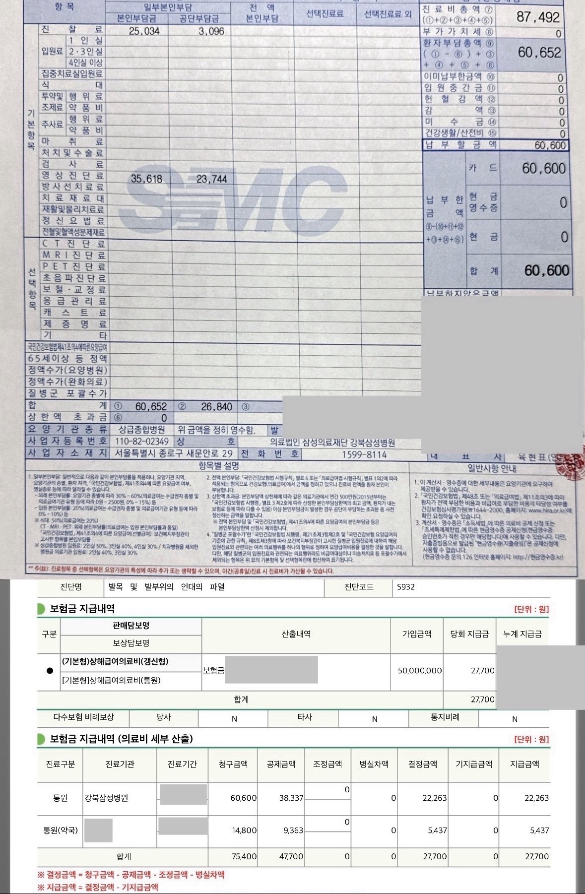 º¸½Ã´Ù½ÃÇÇ Ã»±¸ Åë¿ø Áø·áºñ´Â °ºÏ»ï¼ºº´¿ø(»ó±ÞÁ¾ÇÕ)¿¡¼ ±Þ¿© Ç׸ñÀ¸·Î¸¸ 60,600¿øÀÔ´Ï´Ù.